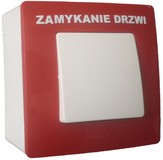 Przycisk przełączny NO/NC umożliwiający zwolnienie drzwi przeciwpożarowych utrzymywanych w pozycji otwartej przez trzymacze elektromagnetyczne.